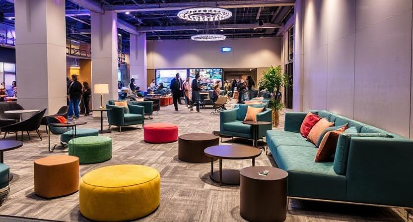Include comfortable furniture zones scattered around the venue, ideal for informal events or networking, such as fairs or cocktail parties.