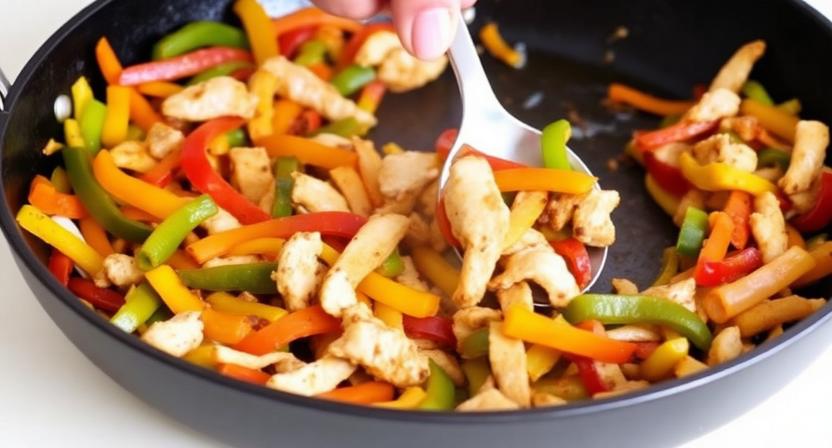 - Uniform cuts: Cutting the chicken and vegetables into similar-sized strips ensures even cooking.